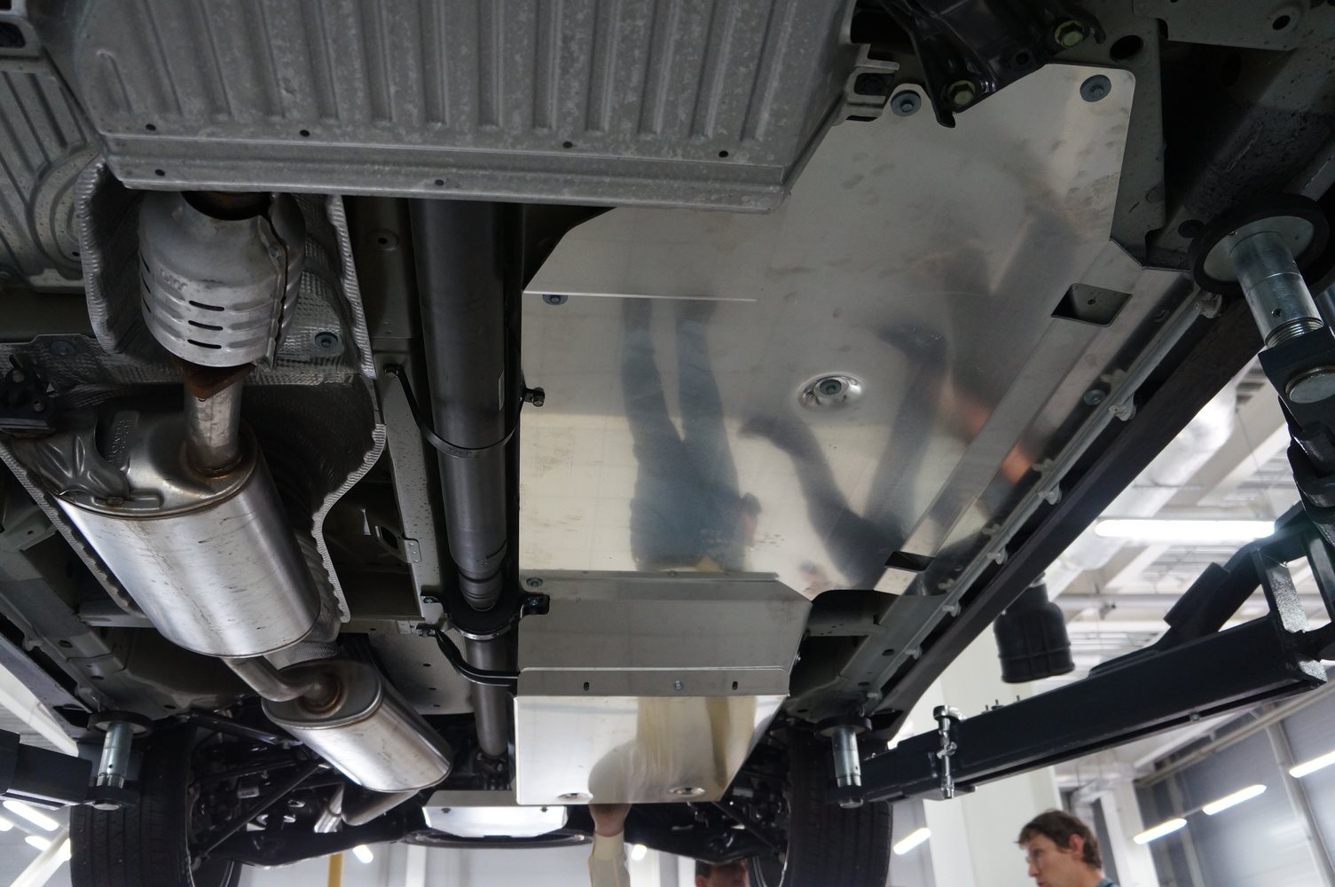 Защита состоит из 4 частей: 1. защита картера и акпп - 1 шт. 2. защита топливных и тормозных трубок - 1 шт. 3. защита топливного бака - 1 шт. 4. защита редуктора - 1 шт.