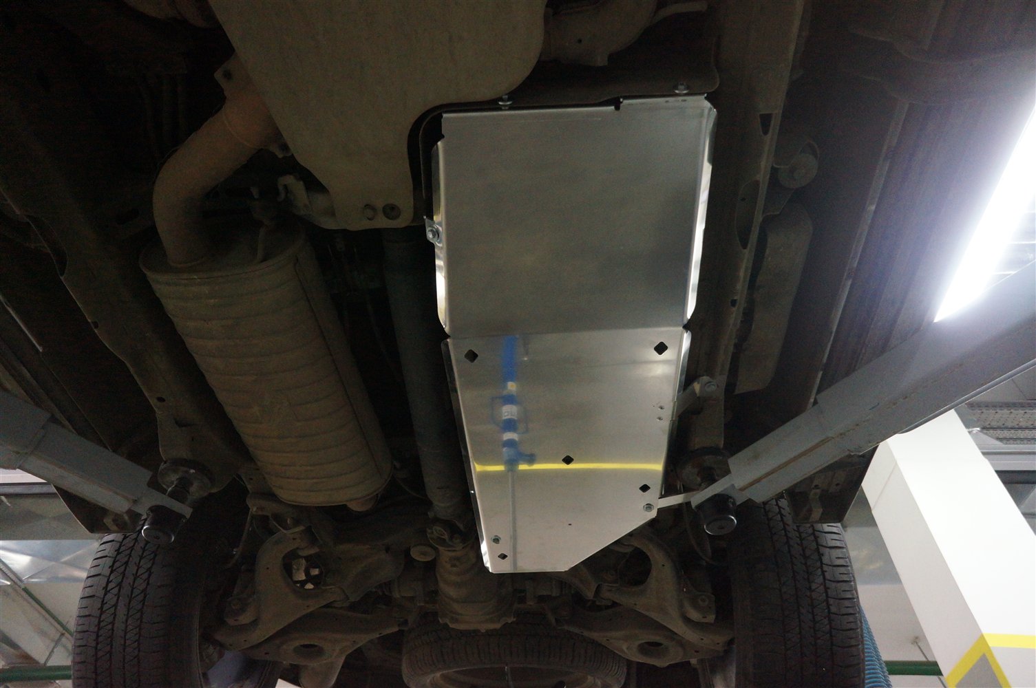 Защита выполнена из алюминия толщиной 4 мм, состоит из 1 части, крепёж поставляется в комплекте. .